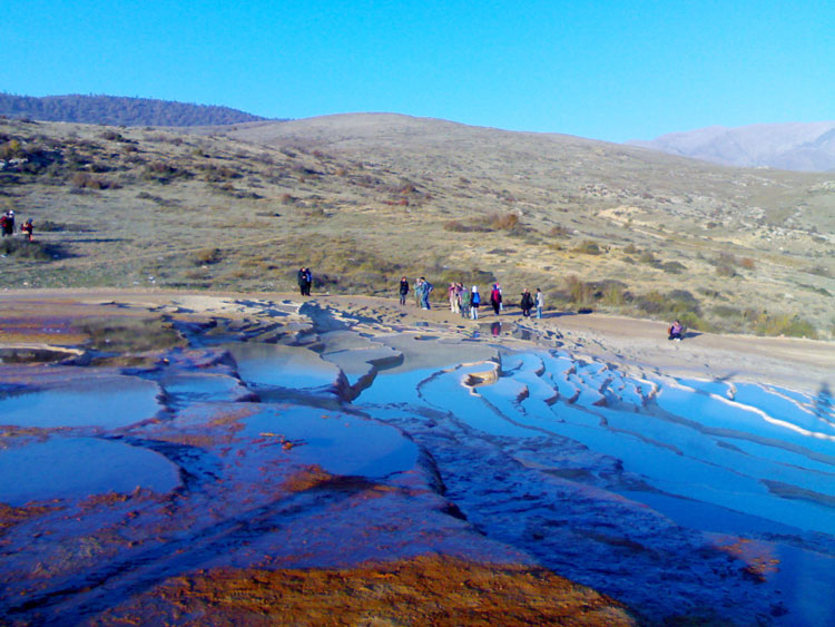این پدیده به دلیل وجود املاح مختلف نمکی،گوگردی و آهن در آب، در طول زمان و در اثر رسوب گذاری به صورت حوضچه های پلکانی سفید رنگ آهکی شکل گرفته است.